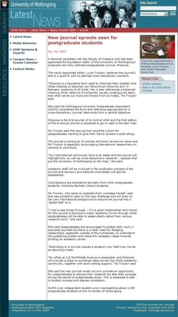 Editorial ContributionsRhizome, Interdisciplinary Postgraduate JournalEditor (2005)GarlandCanadian Editor (2018)